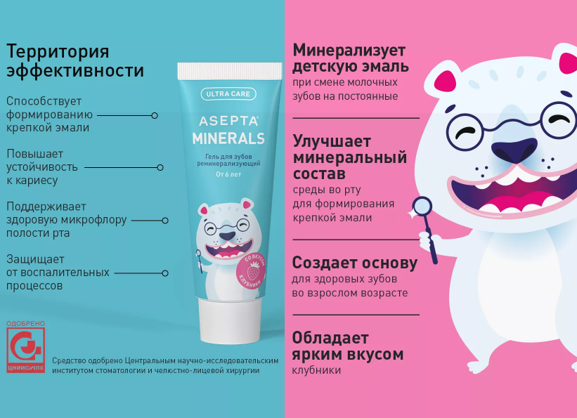 Асепта Зубной гель МИНЕРАЛС реминерализующий для детей с 6 лет 40гр