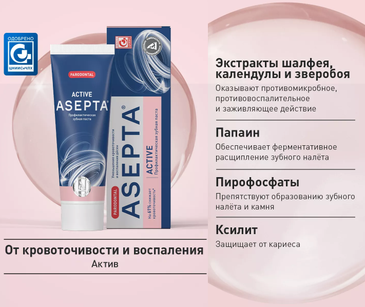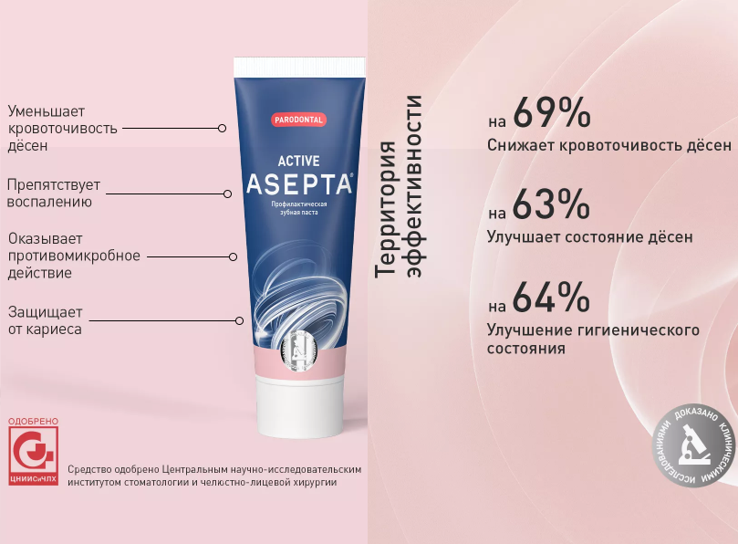 Асепта Зубная паста АКТИВ при кровоточивости десен 75 мл