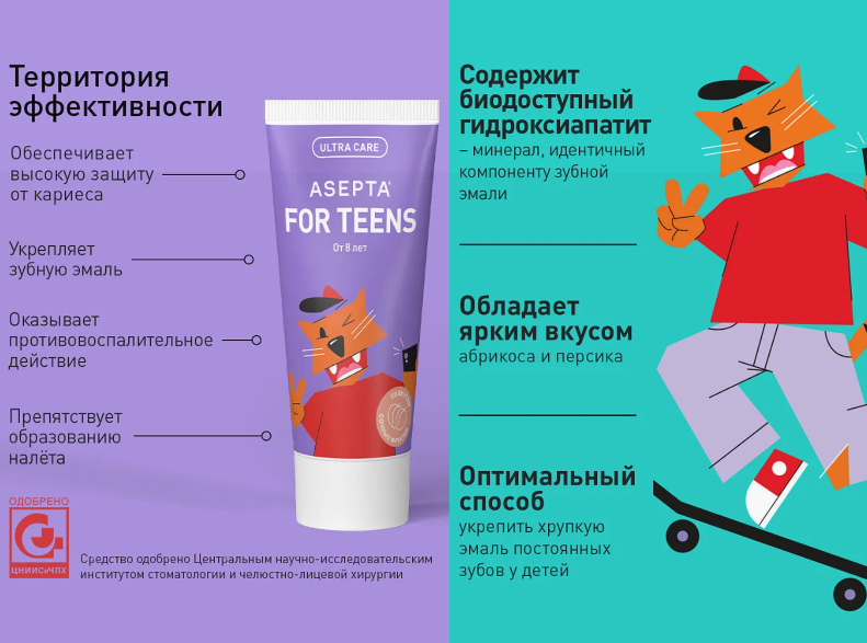Асепта Зубная паста ТИНС от 8 лет 50мл сочные фрукты