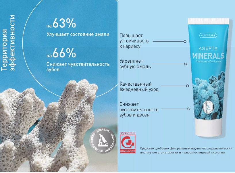 Асепта Зубная паста МИНЕРАЛС для чувствительных зубов, 75мл