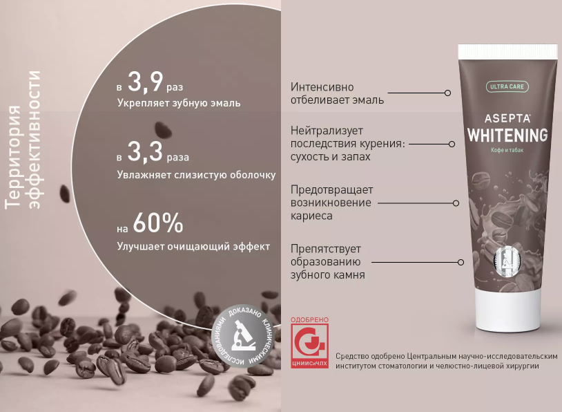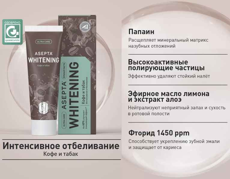 Асепта Зубная паста УАЙТИНИНГ, кофе и табак 75мл