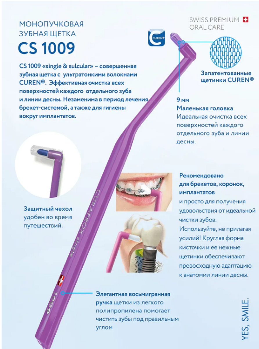 Монопучковая зубная щетка "Single & Sulcular" CS 1009, диаметр щетинок 0,9мм, Curaprox | Купить в интернет-магазине "Мастер Фарм"