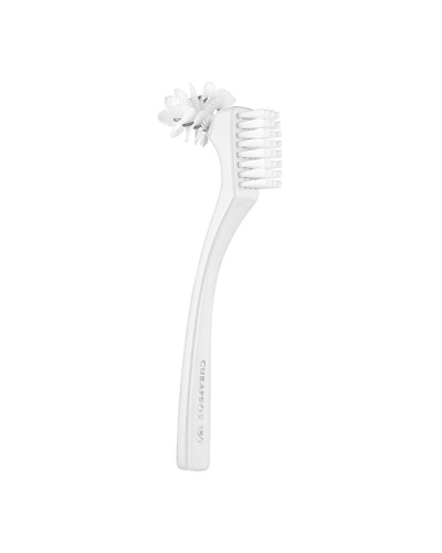 Двусторонняя щетка ухаживает за внешней и внутренней поверхностью протеза.