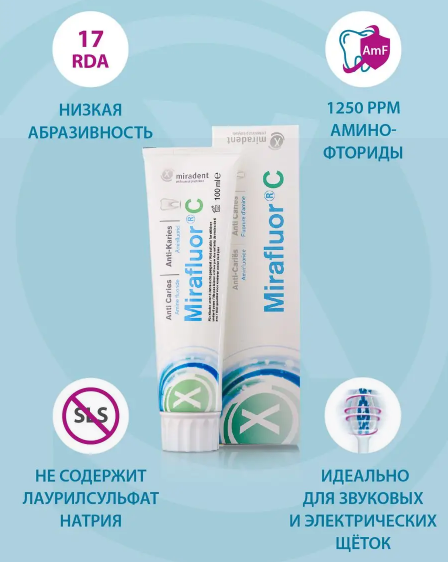 Паста комплексного воздействия, основанная на аминофторидах ( 1.250 ppm ), необходимых для оптимальной защиты от кариеса.