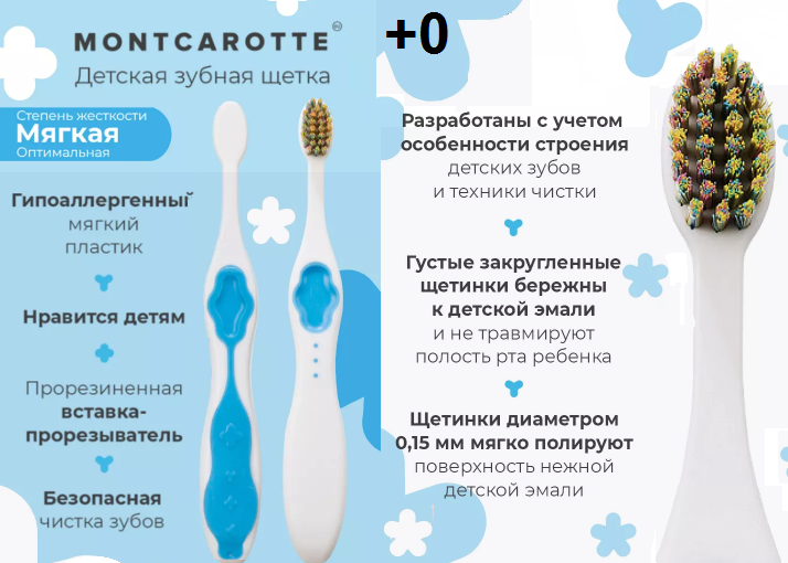 Монткаротте MONTCAROTTE Зубная щетка +0 детская soft (MC213) голубая (Blue)