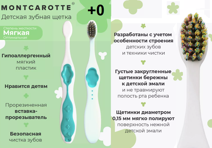 Монткаротте MONTCAROTTE Зубная щетка +0 детская soft (MC214) зеленая (Green)