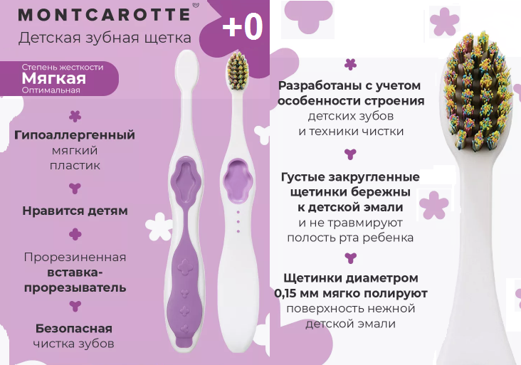Монткаротте MONTCAROTTE Зубная щетка +0 детская soft (MC212) сиреневая (Purple)