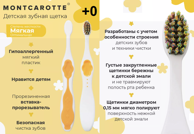 Монткаротте MONTCAROTTE Зубная щетка +0 детская soft (MC210) желтая (Yellow)