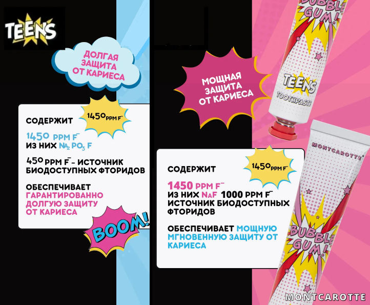 - Биодоступное соединение фторида натрия и монофторофосфата натрия (1450 ppm) укрепляет эмаль и защищает от кариеса;