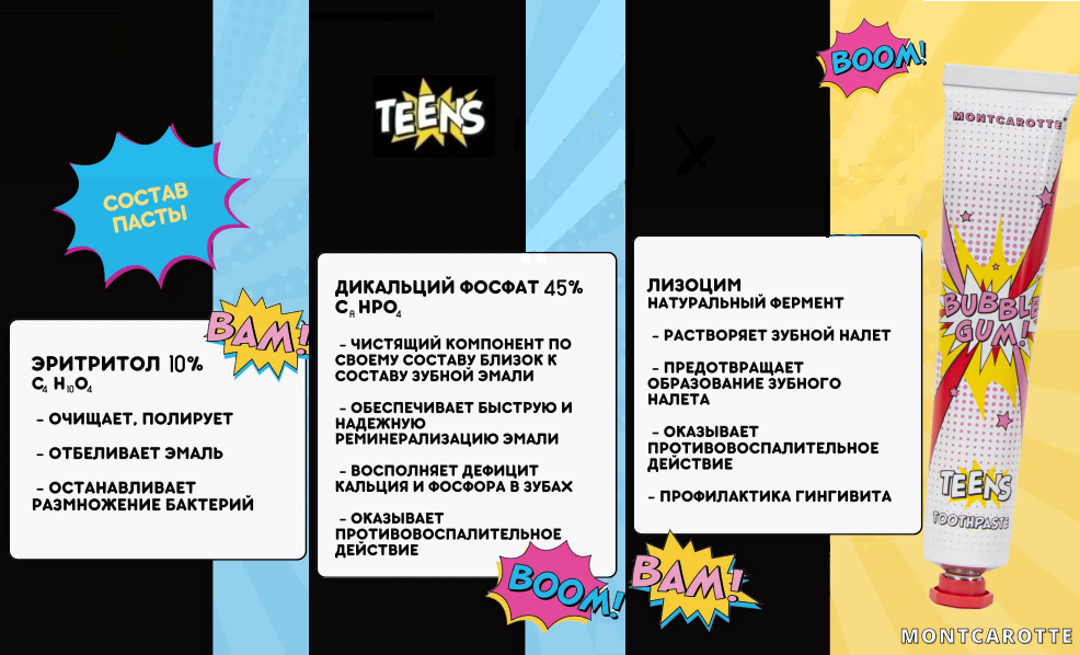 - Подойдет во время ортодонтического лечения - будет обеспечивать качественную гигиену полости рта. Зубная паста имеет сладкий вкус жевательной резинки.