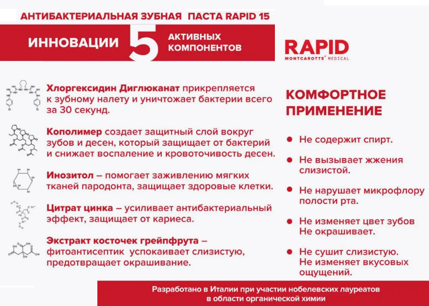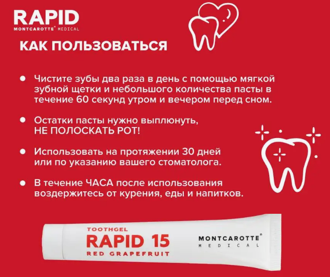 MONTCAROTTE RAPID 15 Зубная паста гелеобразная, красный грейфрут 50мл