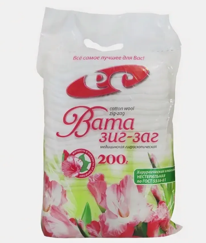 Хирургическая гигроскопическая нестерильная вата из длинноволокнистого 100% хлопка Зиг-Заг, Емельяновская ( 200 гр ) | Купить в интернет-магазине "Мастер Фарм"