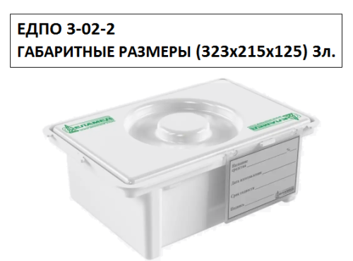 Ппредназначен для дезинфекции и предстерилизационной очистки изделий медицинского назначения в лечебно-профилактических учреждениях. Изготовлен из химически стойкого, нетоксичного полипропилена. Состоит из корпуса в виде емкости прямоугольной формы, перфорированного поддона, пластины для погружения в раствор лёгких изделий, крышки и карманов (2 шт.). В верхней части корпуса имеются бортики для плотного прилегания крышки и удобства переноски емкости и выемки для устойчивой установки поддона при стекании раствора. На внешней стороне бортиков корпуса имеются две зоны для размещения прозрачных пластиковых карманов под бумажный носитель служебной информации.
