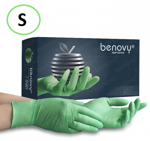 Перчатки нитриловые S Benovy (1уп. - 50 пар) зеленые | Купить в интернет-магазине "Мастер Фарм"
