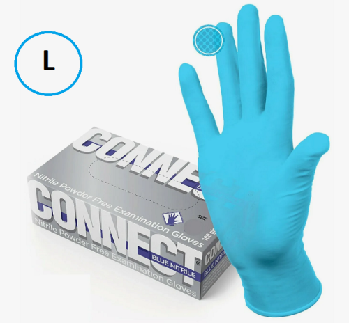 Нитриловые перчатки неопудренные голубые, размер: L CONNECT BLUE NITRILE ( 100 пар ) | Купить в интернет-магазине "Мастер Фарм"