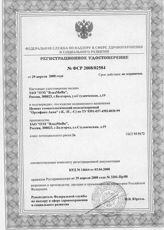 - «Ортофикс-Аква» стеклоиономерный обладает хорошей адгезией к эмали и дентину, низкой растворимостью, высокой механической прочностью, постепенно выделяет ионы фтора, что препятствует развитию вторичного кариеса.