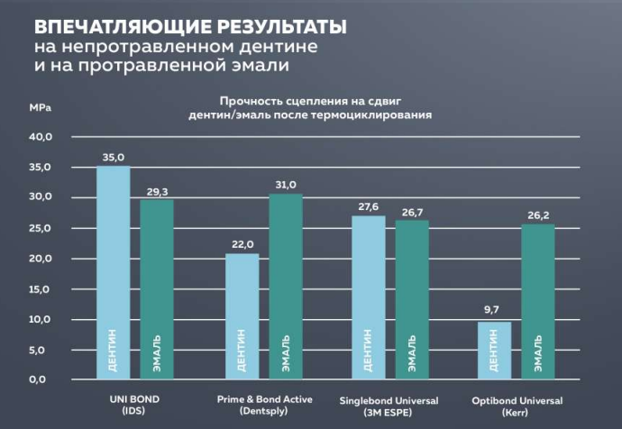Адгезив Юни Бонд можно использовать в техниках: самопротравливания, селективного или тотального травления.