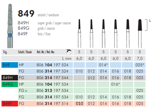 Стоматологический 849 025 G FG 313 Бор алмазный Meisinger (5шт) | Купить в интернет-магазине "Мастер Фарм"