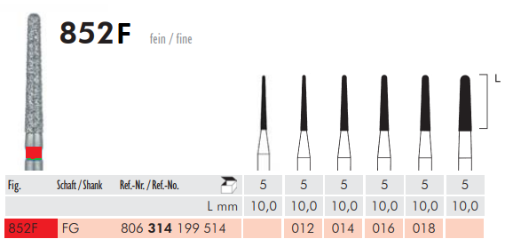 Алмазный бор 852 018 F FG 314 Meisinger, конус с закругленным концом (5шт) | Купить в интернет-магазине "Мастер Фарм"