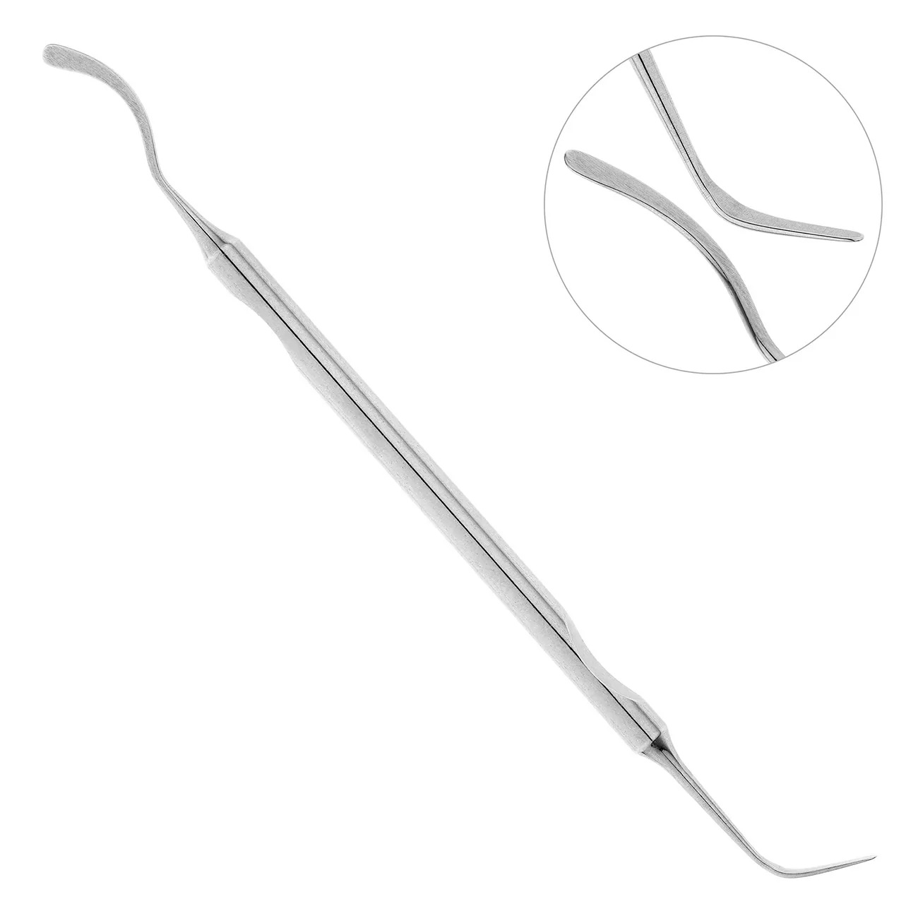 Рабочие части различны, одна из них представлена в форме плоской серповидной лопатки с округлым концом, вторая же имеет тонкое и узкое окончание, предназначенное для небольших эстетических манипуляций.