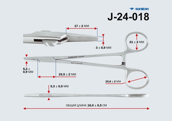 Предназначен для удерживания хирургической иглы при проведении ее через пласты тканей в ротовой полости.