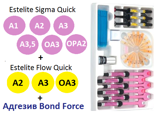 2. Композиты Estelite Sigma Quick в шприцах ( А1, А2, А3, А3,5, ОА3, ОРА2E )