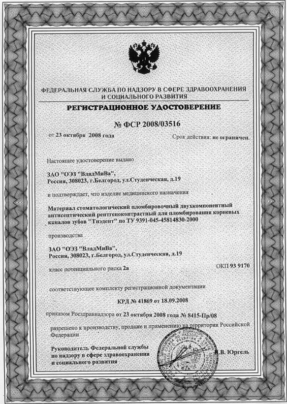 Тиэдент Владмива - для пломб.кор. каналов зубов при лечении всех форм периодонтитов | Купить в интернет-магазине "Мастер Фарм"