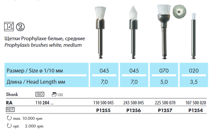 Щетки для профилактики доступны трех степеней жесткости и подходят для целенаправленного удаления зубного налета и легкого зубного камня.