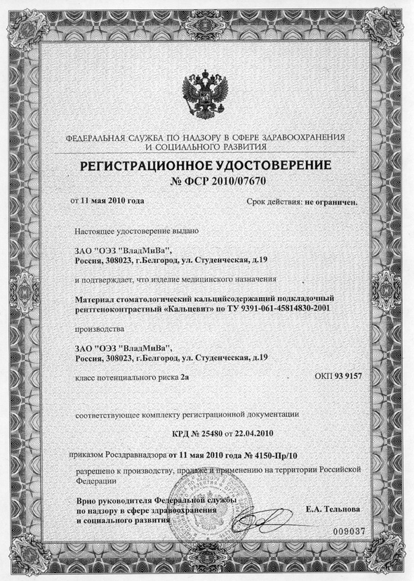 Кальцевит Владмива-кальцесодержащий подкладочный ренгеноконтрастный материал (паста) серт. | Купить в интернет-магазине "Мастер Фарм"