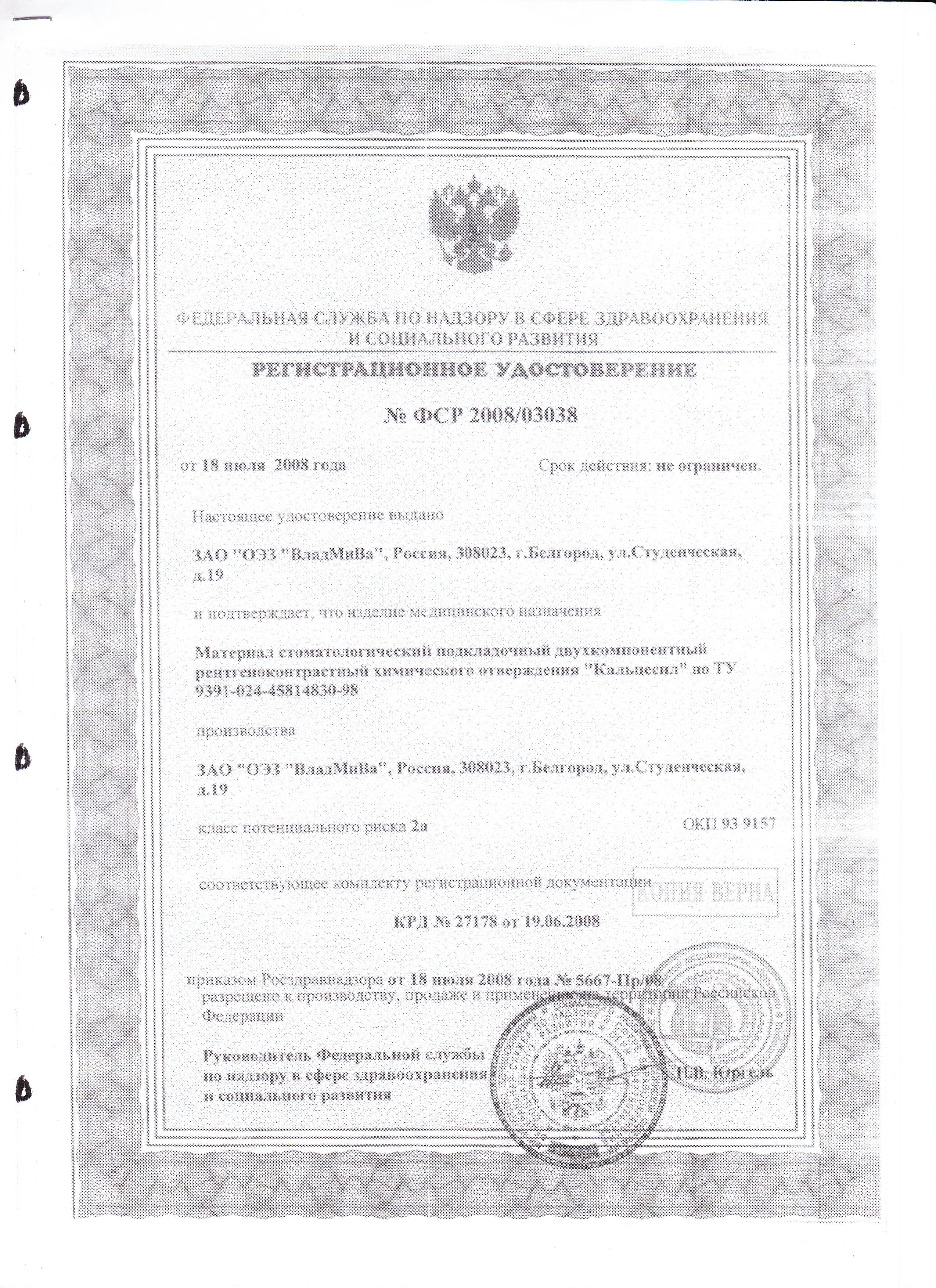 - Материал «Кальцесил» двухкомпонентный (паста-паста) рентгеноконтрастный кальцийсодержащий подкладочный материал химического отверждения.