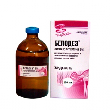 «Белодез» представляет собой стабилизированный раствор (гель) гипохлорита натрия, растворяет органическую основу дентина: как живые (химически фиксированные) так и некротизированные ткани. Гелеобразная форма выпуска позволяет успешно применять материал для антисептической обработки полостей зубов верхней челюсти, поскольку он обладает достаточной вязкостью, текучестью и щадяще воздействует на слизистую.