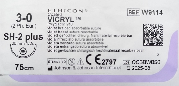 Викрил 3/0, (2) фиолет, 75 см, игла кол., 20мм., 1/2 W9114 | Купить в интернет-магазине "Мастер Фарм"