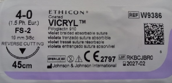 Викрил 4/0 (1,5) фиолет., 45 см, игла обратно-режущая, 19 мм 3/8 W9386 | Купить в интернет-магазине "Мастер Фарм"