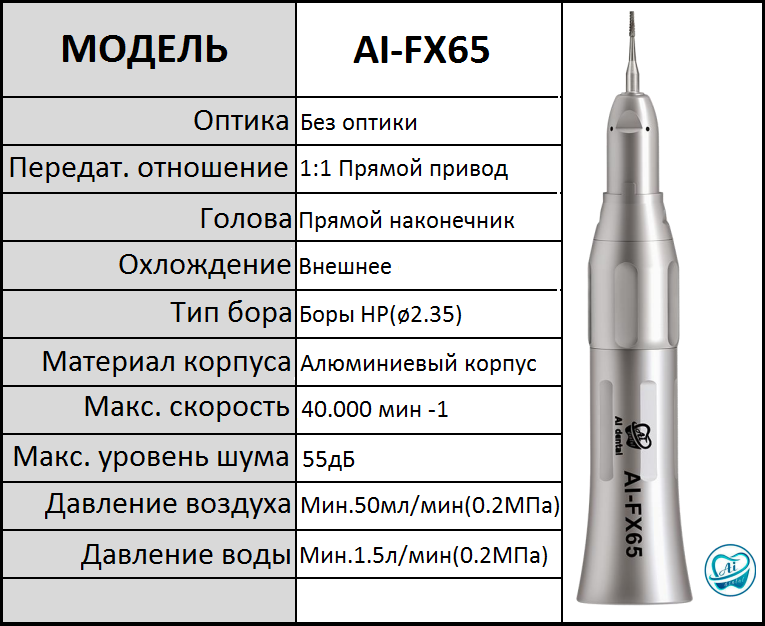 Купить Наконечник прямой AI-FX65 Без воды, без света, внешнее охлаждение 1:1 с доставкой. Интернет-магазин "Мастер Фарм"