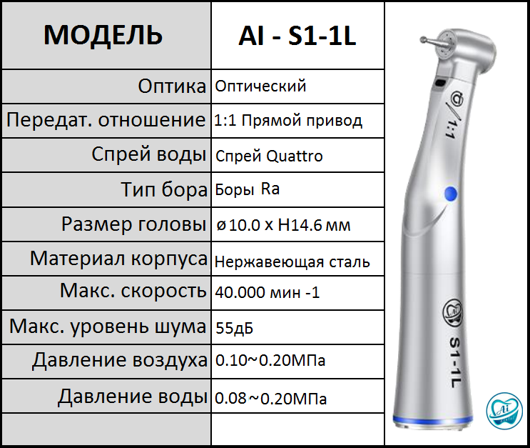 Купить Наконечник угловой 1:1 AI-S1-1L с водой, с оптикой на RA по выгодной цене в интернет-магазине "Мастер Фарм"