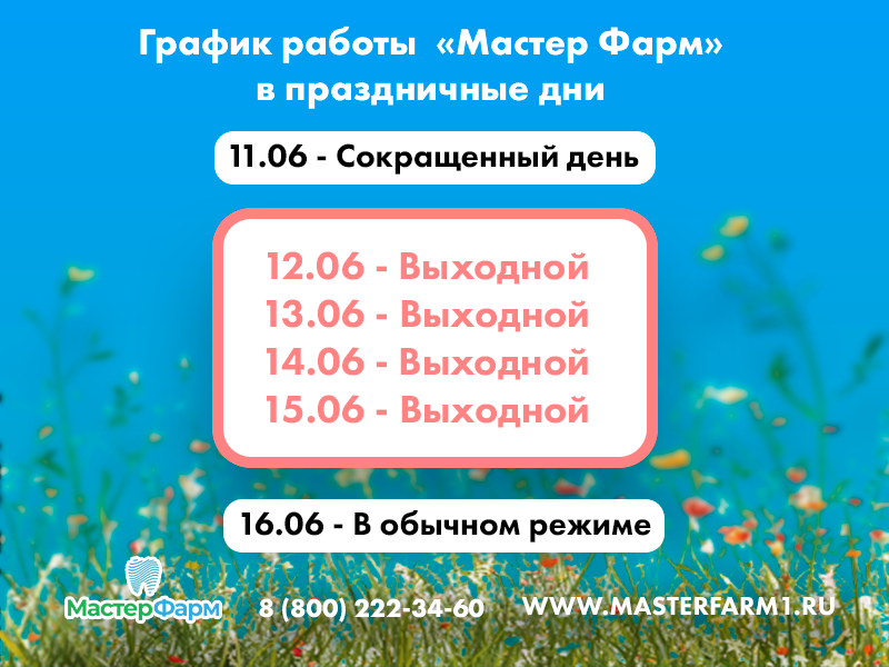 В интернет-магазине заявки принимаются 24/7. Обработка, отправка и доставка заказов осуществляется в рабочее время в оперативном порядке. По всем вопросам вы можете обратиться по телефону 8 800-222-34-60 или по почте info@masterfarm1.ru