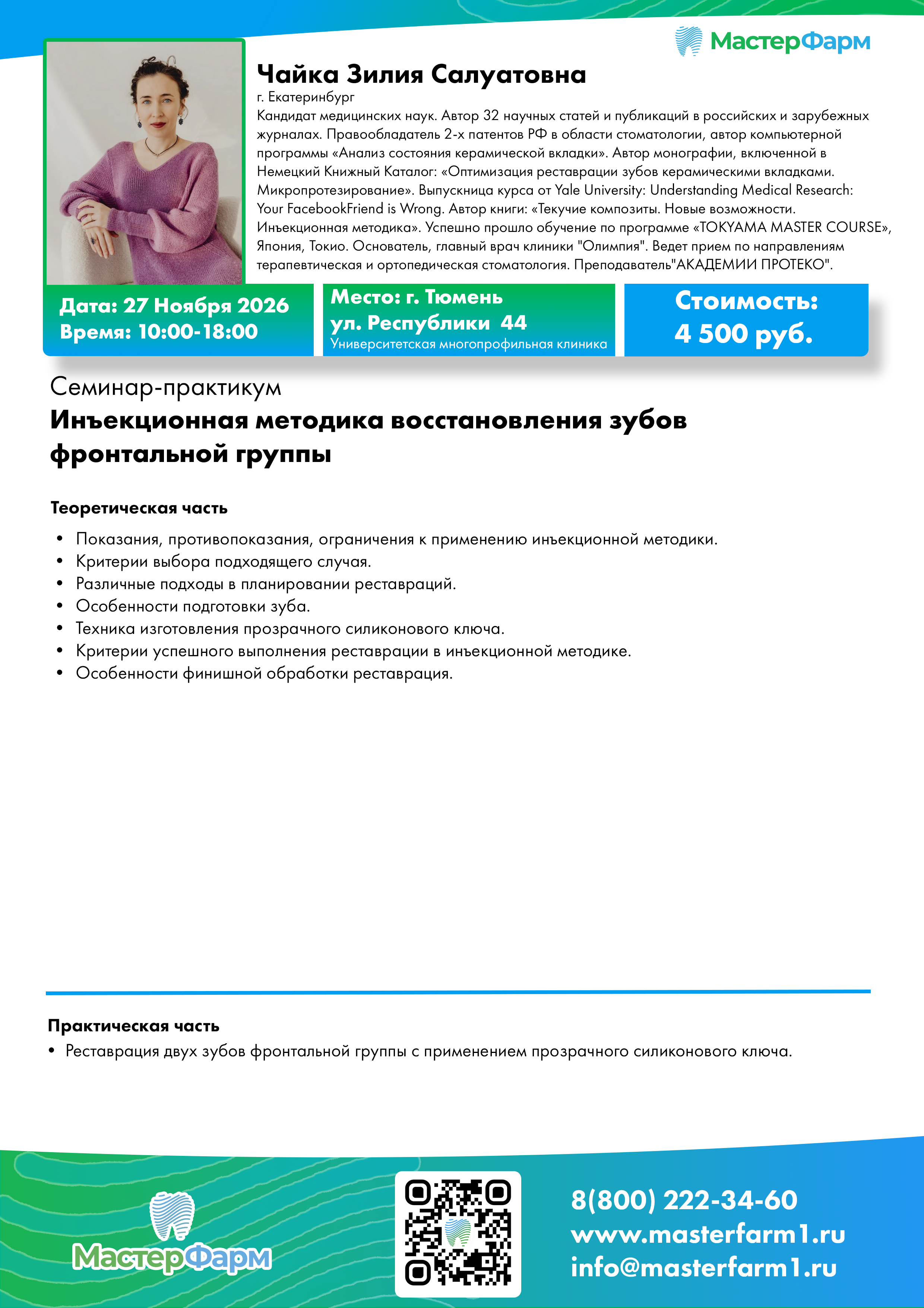 Специалист в области эстетической реставрации и инъекционных методик в стоматологии